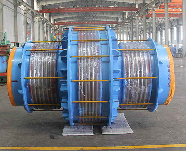 特點(diǎn):復(fù)式膨脹節(jié)由一個(gè)中間管段連接兩個(gè)波紋管組成,用于吸收組合位移與角位移;該模型用于橫向位移較大的管網(wǎng);壓力可由拉桿來(lái)承受