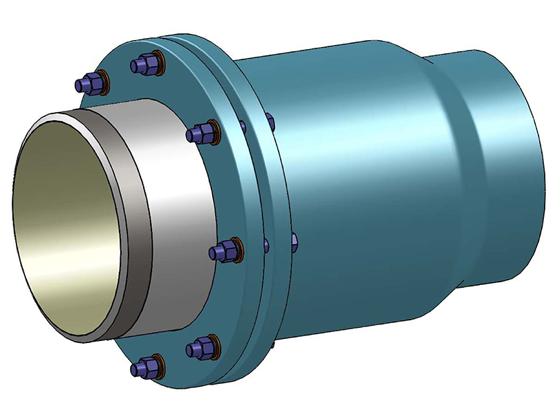 特點(diǎn):旋轉(zhuǎn)補(bǔ)償器因軸向位移被限制,盲板力在補(bǔ)償器內(nèi)部被吸收,因此管網(wǎng)中支架不承受盲板推力。